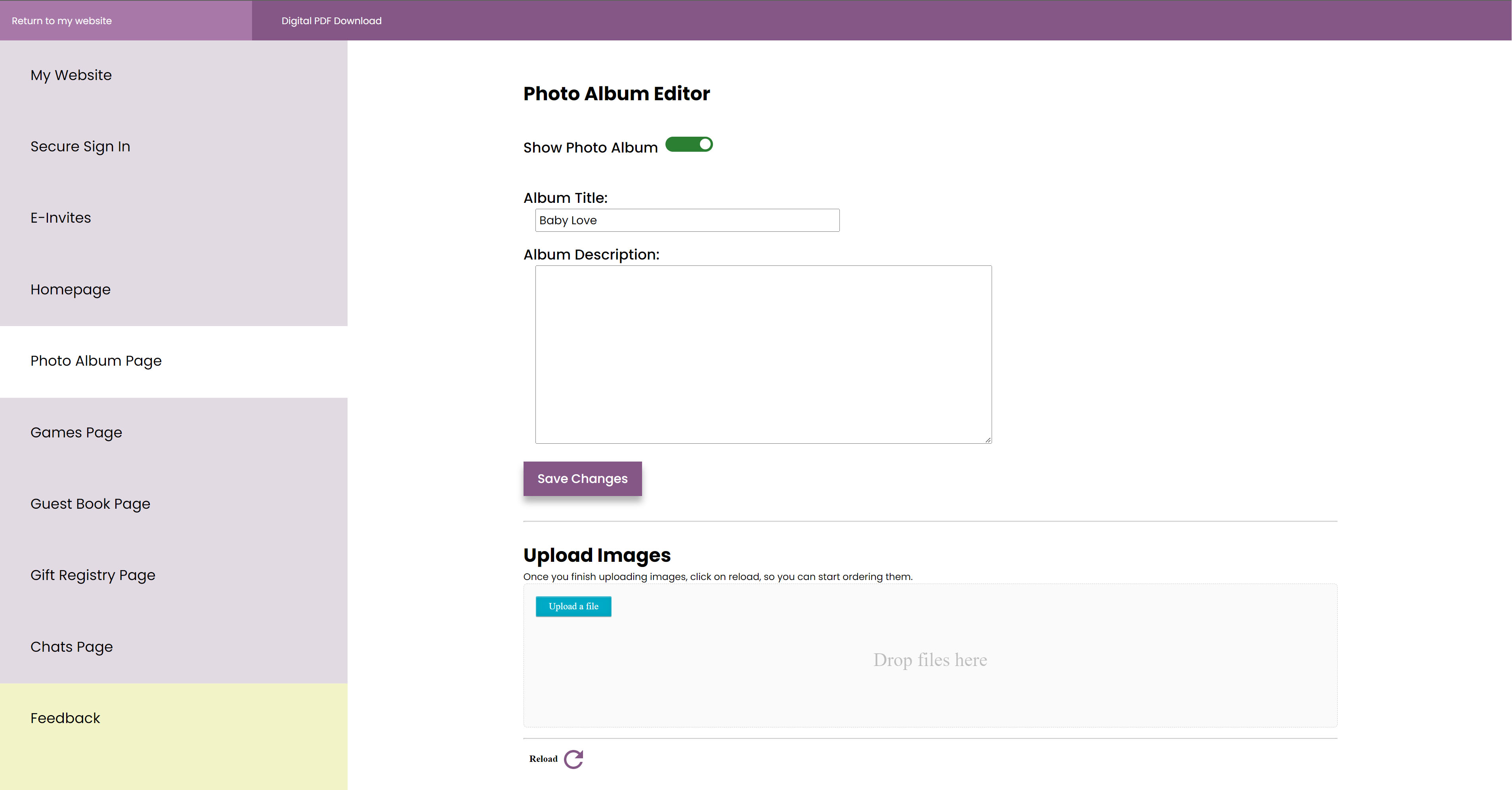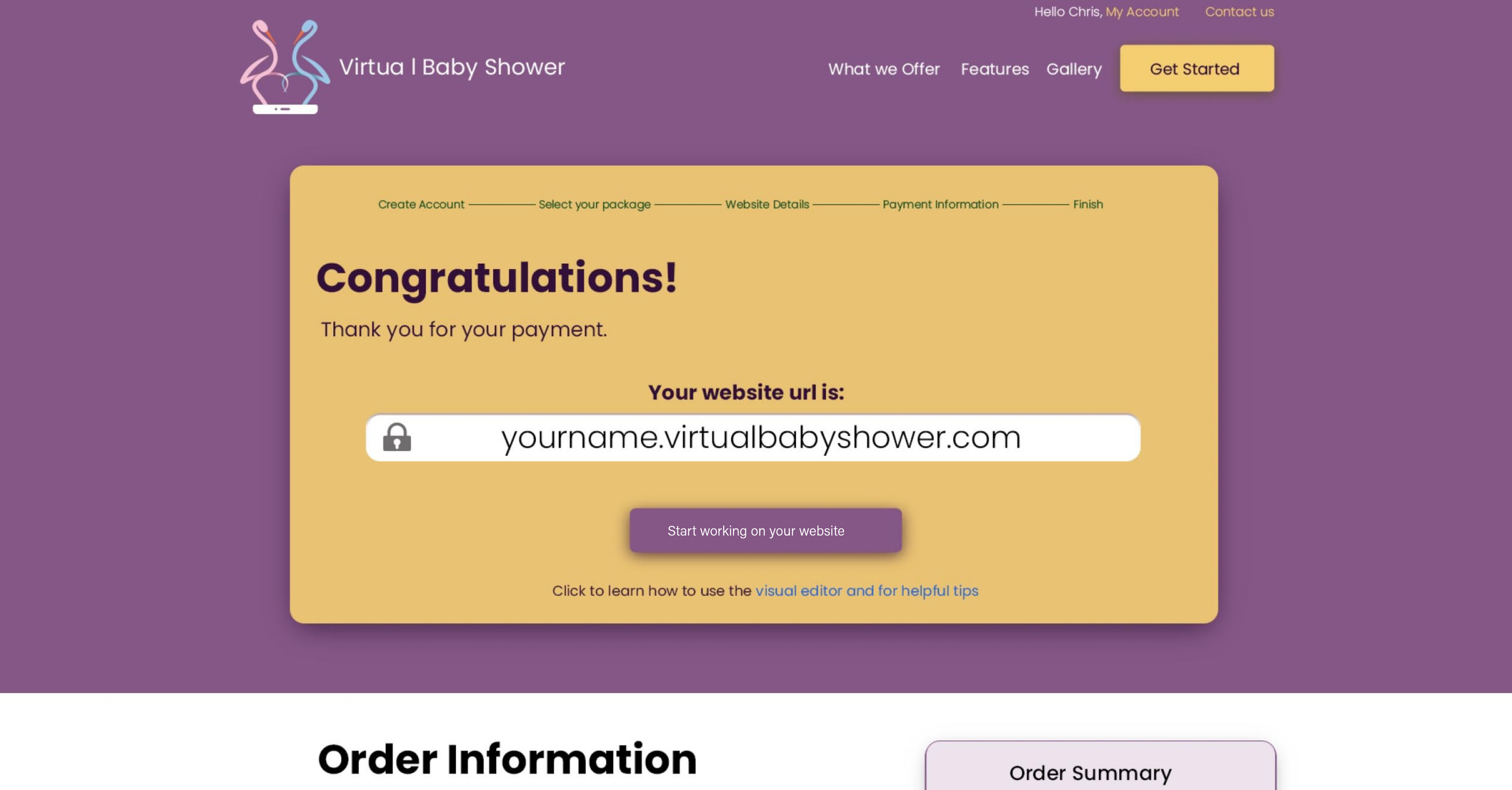 Key tasks were important to be able to have on the website such as, e-invites, gallery, guest book, and sharing posts with friends and family.