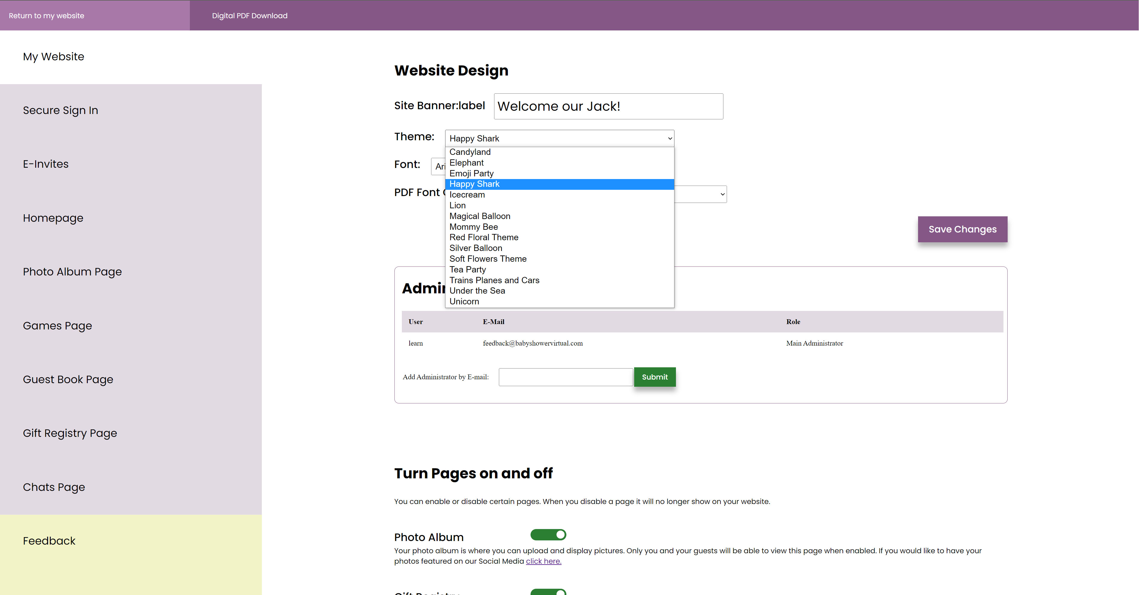 Virtual Baby Shower provides a platform for expecting parents where they can access a dedicated content management system with baby showers in mind. Here they will be able to decide who can see the website, by invitation or leaving it open to the public. Hosts can share content, and photos to keep family, friends and loved ones up to date about their pregnancy journey.